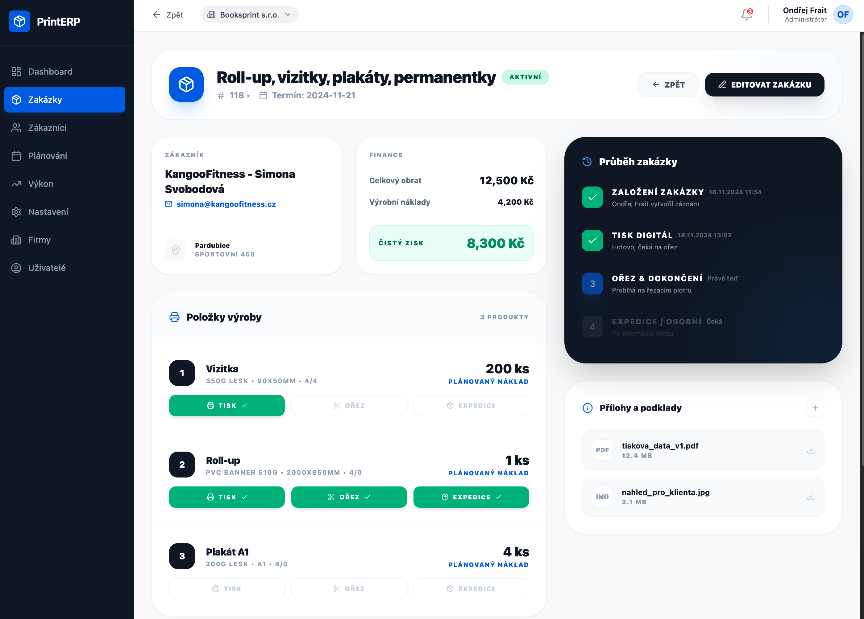 Ruční zadávání zakázek, sledování tiskáren, cen a fakturace způsobovalo chyby a ztrátu času.