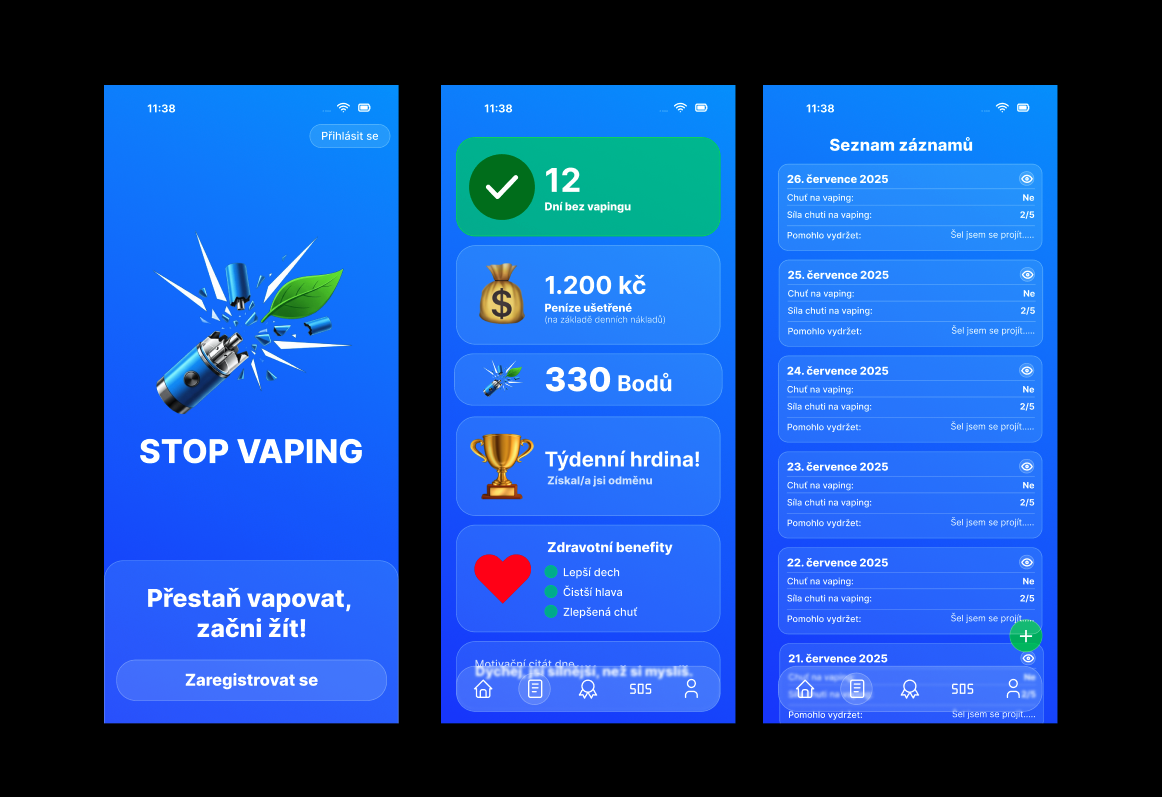 Uživatelé potřebovali nástroj ke sledování a snižování závislosti na nikotinu.